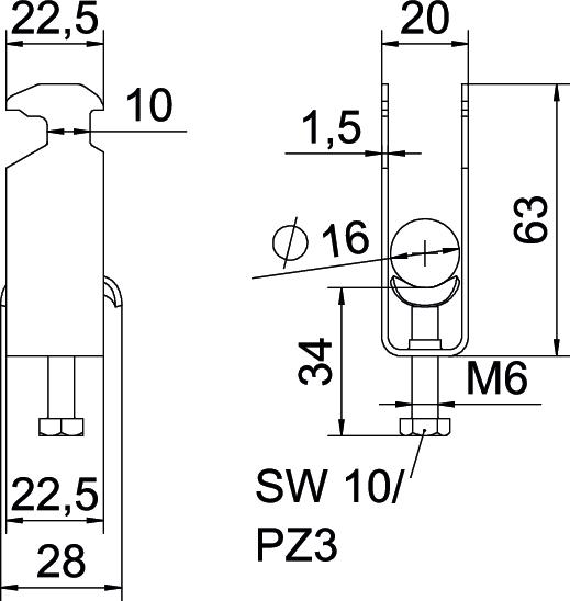 - Materiaal klem: Staal