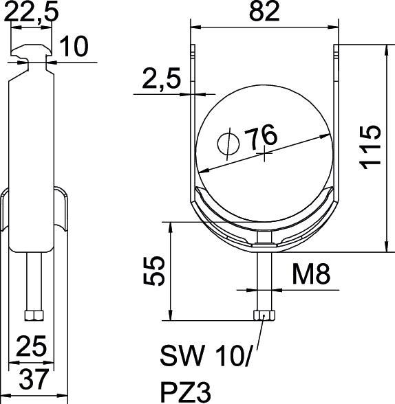 Beugelklem 2056 70-76mm staal thermisch verzinkt 1186076 VVE=25 OBO