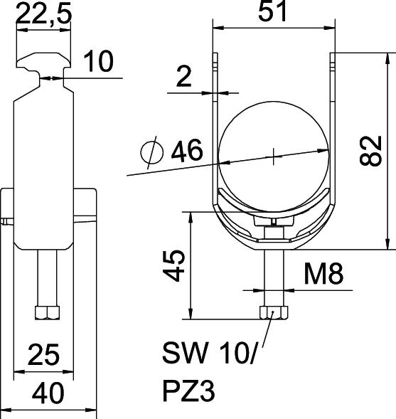 Beugelklem 2056 40-46mm rvs A2 1.4301 blank VVE=25 1186342 OBO