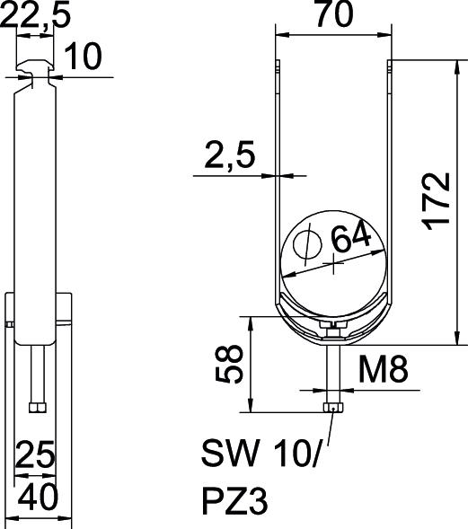 Beugelklem 2056 2-vdg 58-64mm rvs A2 1.4301 blank VVE=15 OBO