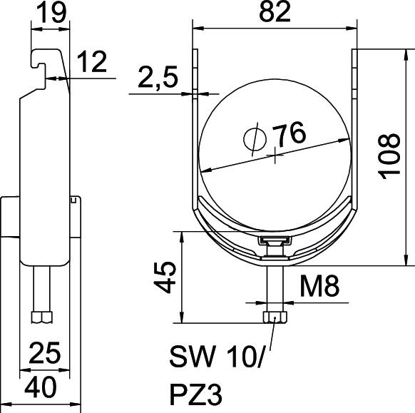 Beugelklem 2056 70-76mm Roestvast staal A2 1.4301 Blank, nabehandeld VVE=10 OBO