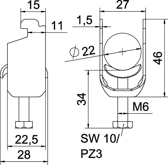 Beugelklem 2056 16-22mm staal verz VVE=100 1187014 OBO