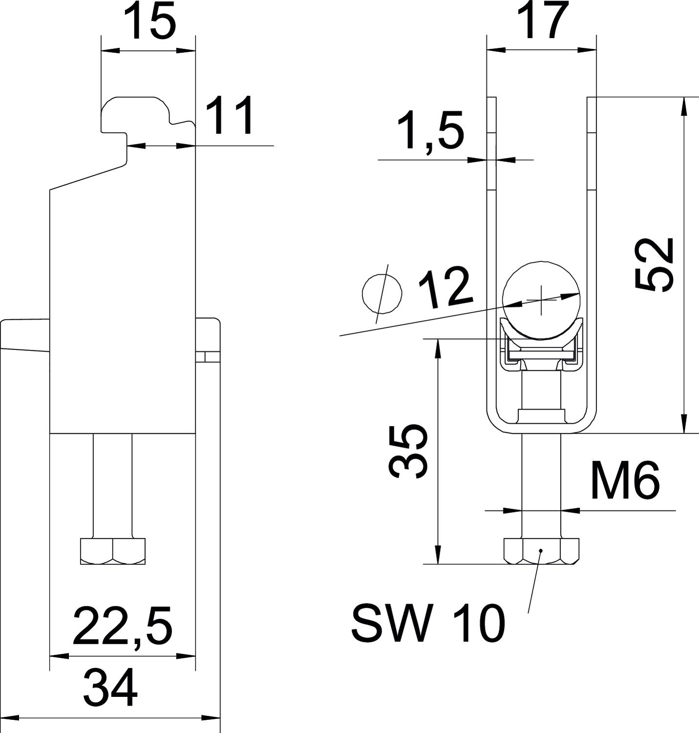 - Materiaal klem: Staal