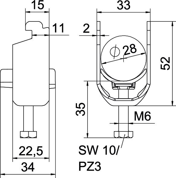 Beugelklem 2056 22-28mm aluminium 1187320 VVE=50 OBO