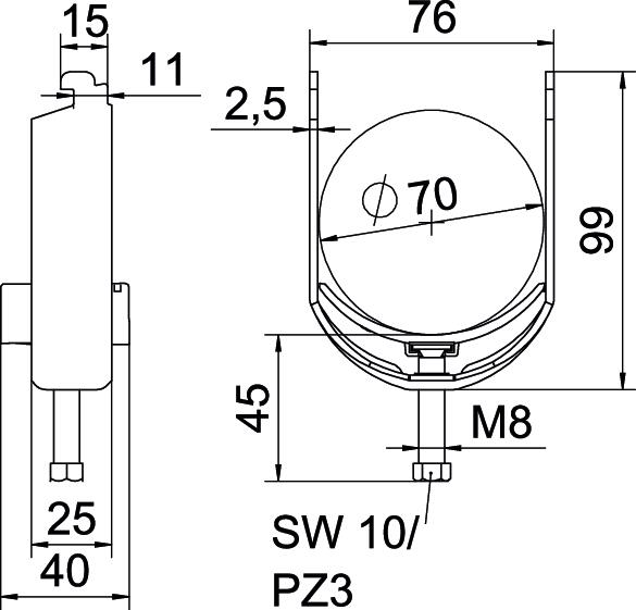 Beugelklem 2056 2-voudig 16-22mm staal thermisch verzinkt 1187615 VVE=50 OBO