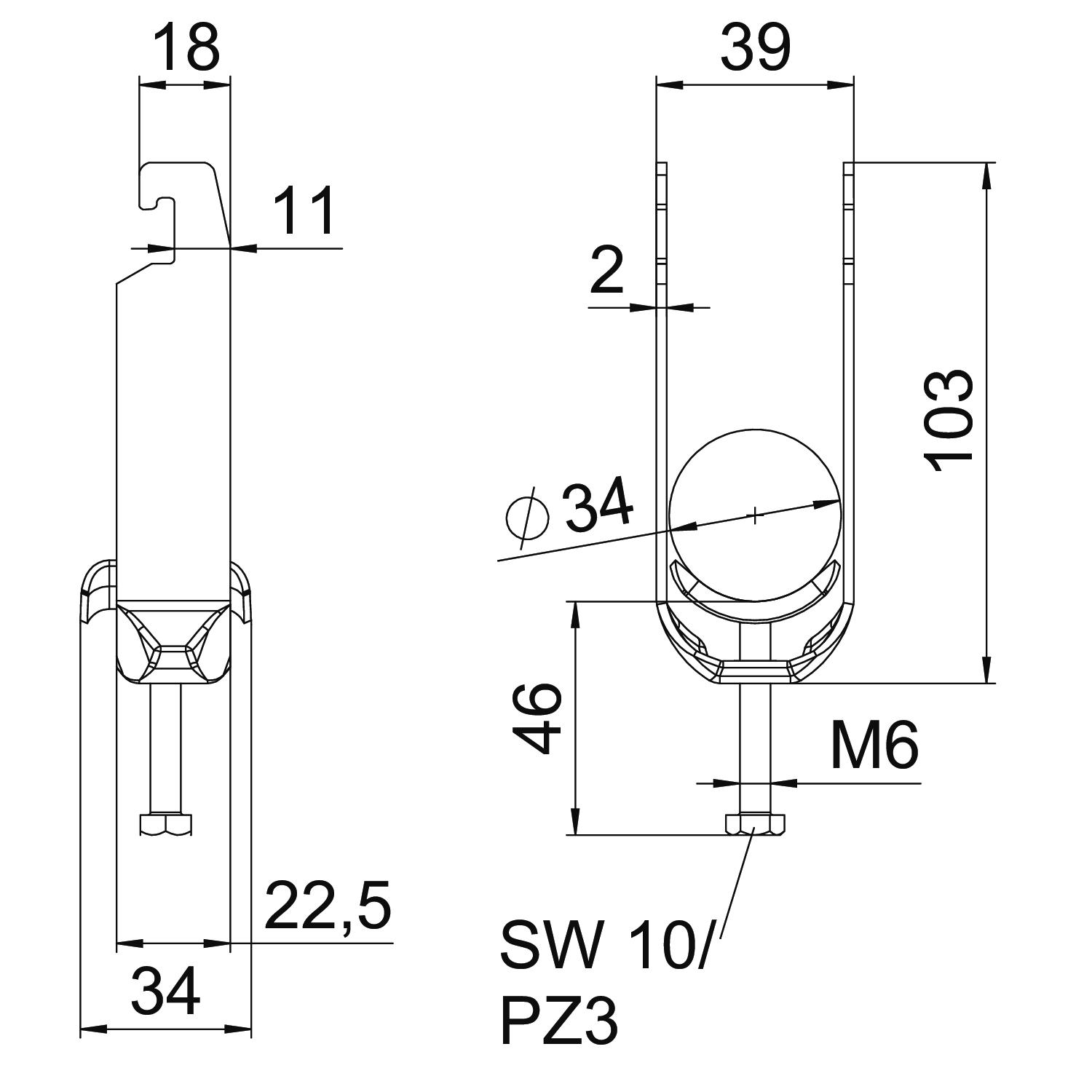 Beugelklem 3-voudig 28-34mm staal thermisch verzinkt VVE=50 OBO
