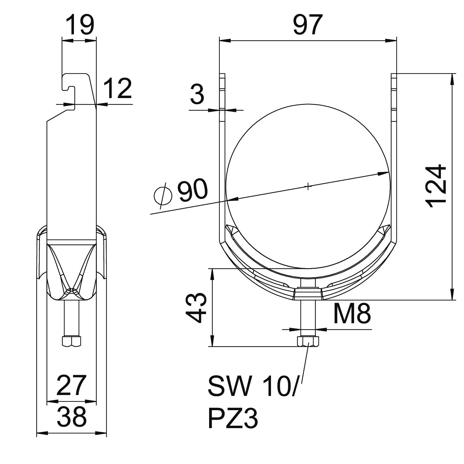 Beugelklem 82-90mm staal thermisch verzinkt VVE=25 OBO