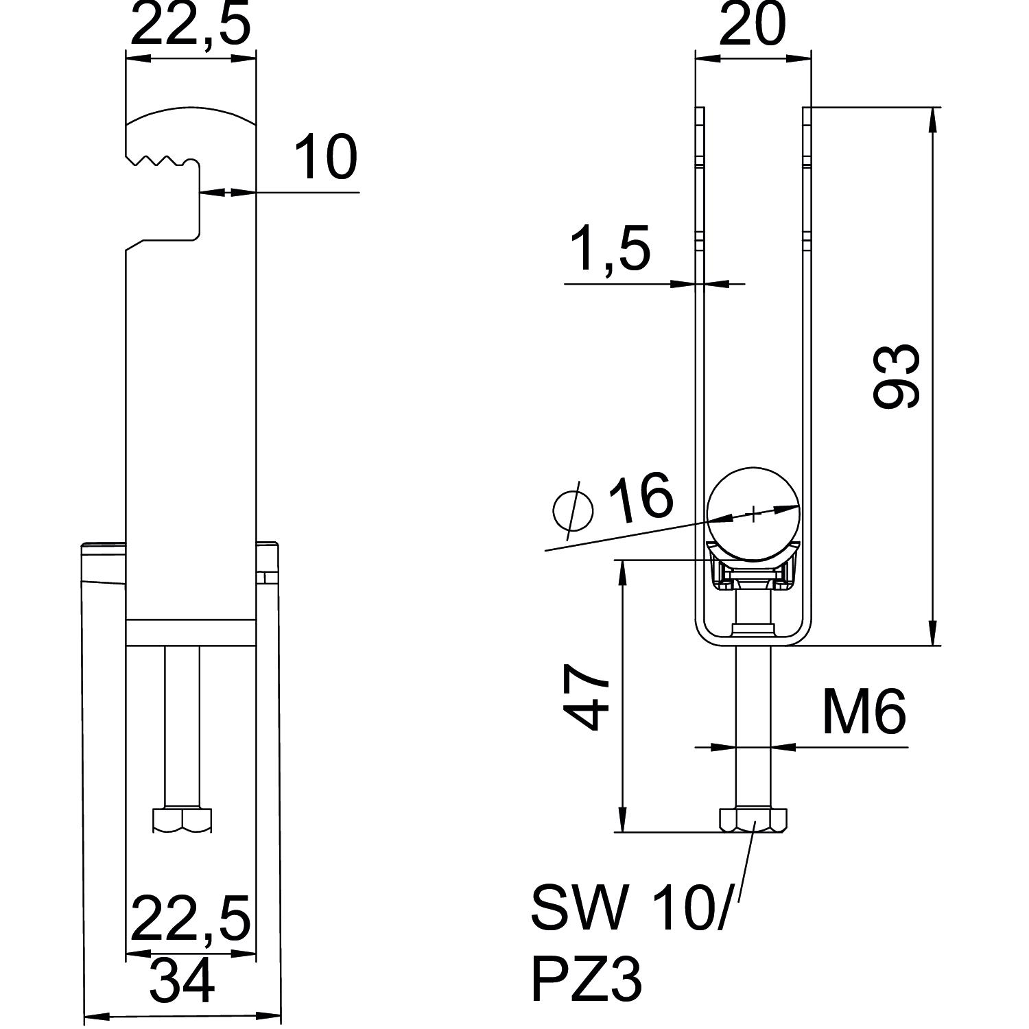 - Materiaal klem: Staal