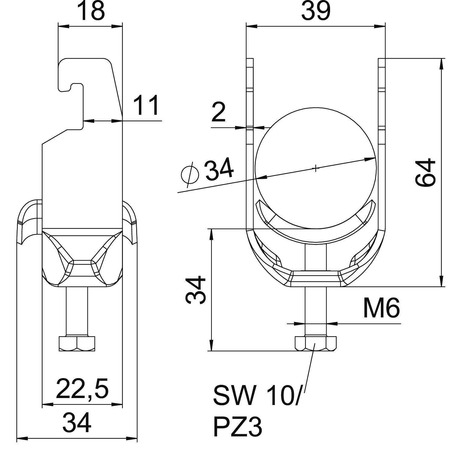 - Voor buizen (metrisch): 34