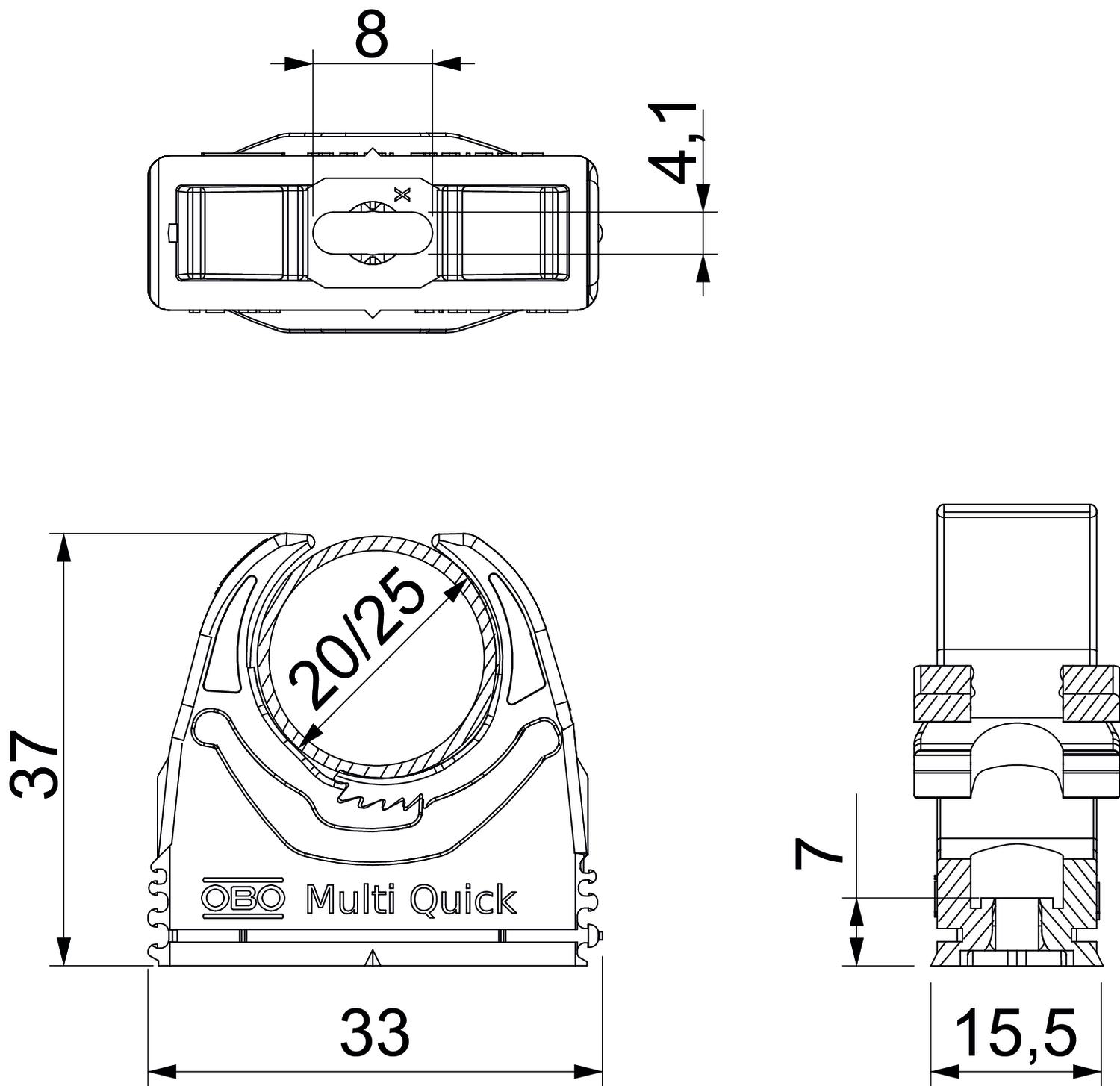 Kabelbuisklem Multi-Q koppelbaar 20-25mm Polyamide lichtgrijs RAL7035 VVE=50 OBO