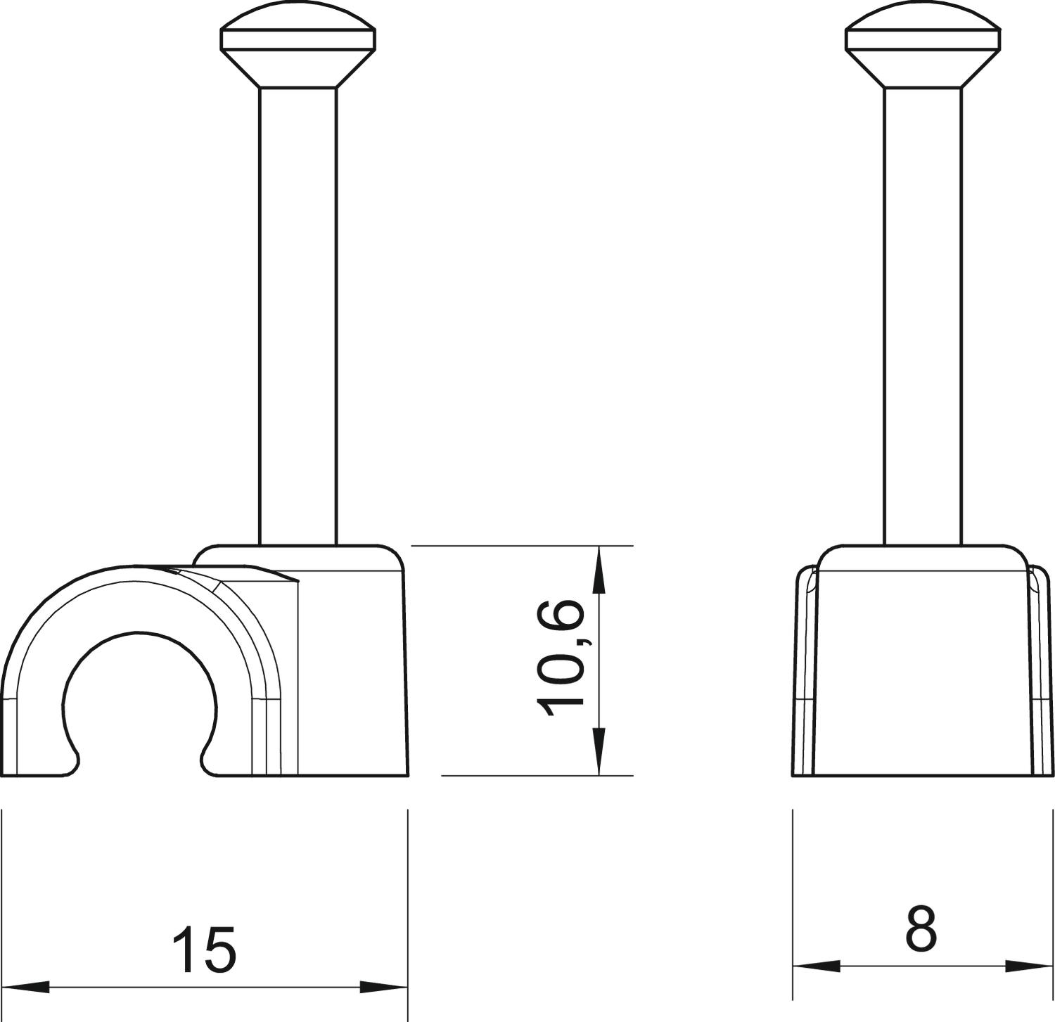 ISO-nagelclip 8mm L25 polypr. li.grijs RAL 7035 VVE=300 OBO