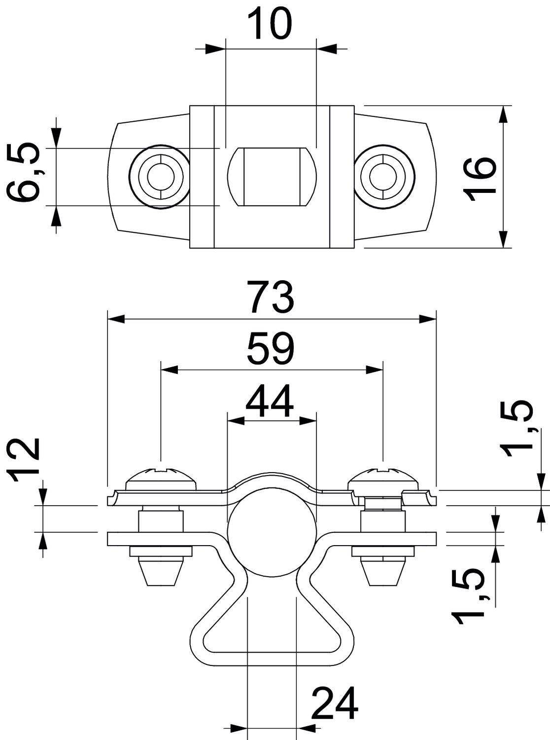 Afstandklem met sleufopening 36-44mm rvs A4 1.4571 VVE=20 OBO