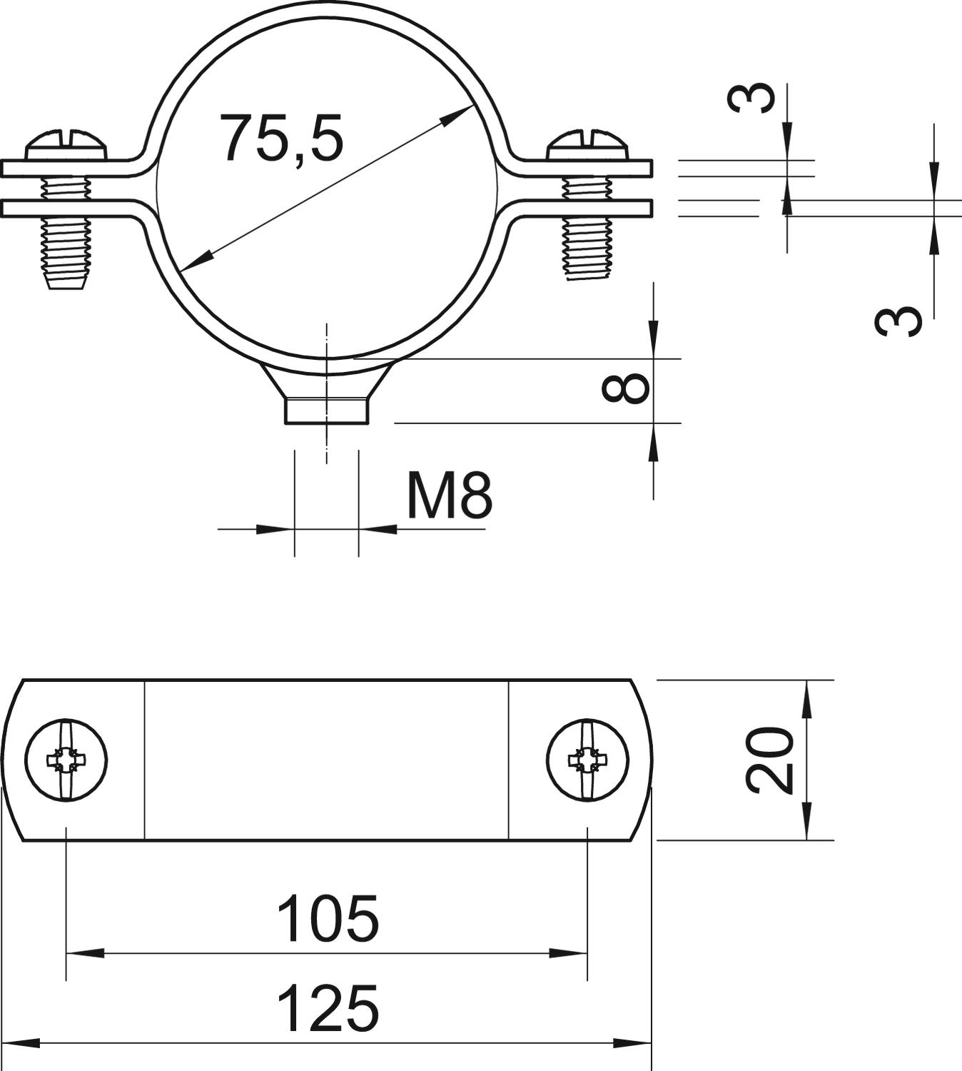Afstandklem draadaansl. M8 2 1/2" staal verzinkt VVE=50 OBO