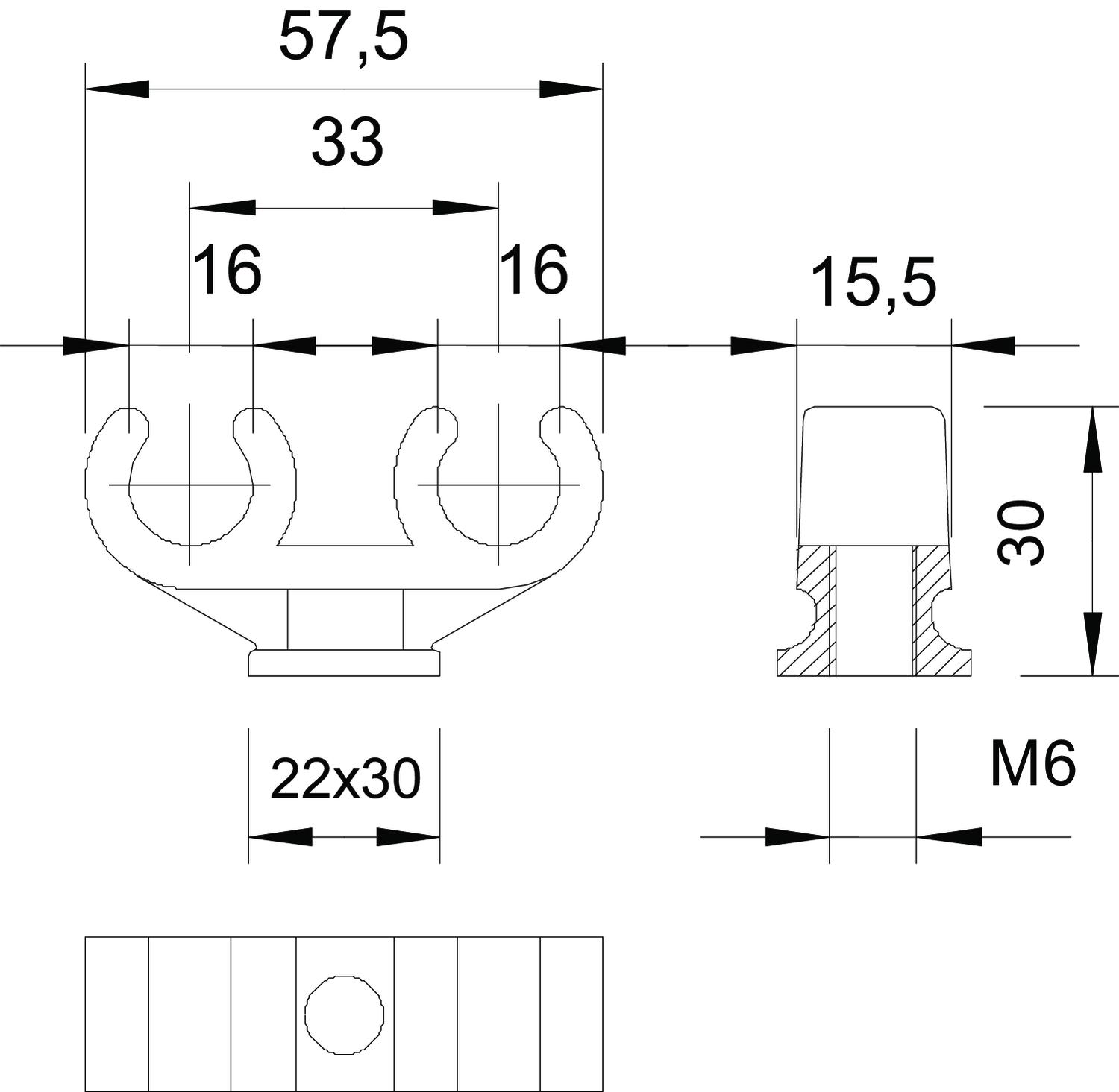 Sokkel-klembeugel 2 kabels 15-16mm polypr. li.grijs VVE=50 OBO
