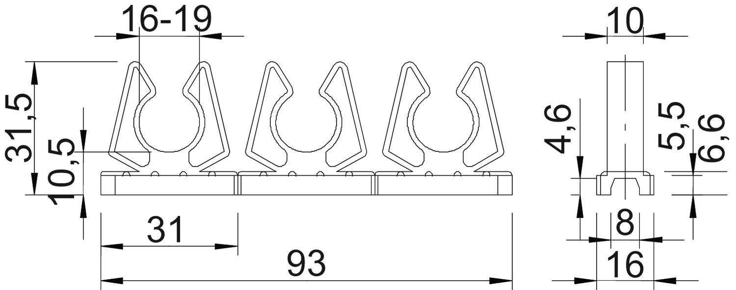 Klemstrook (3 klemmen) 16-19mm polyethyleen cremewit RAL9001 OBO