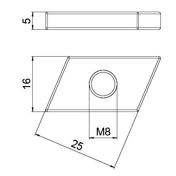 Glijmoer profielrail middel M8 VVE=100 OBO