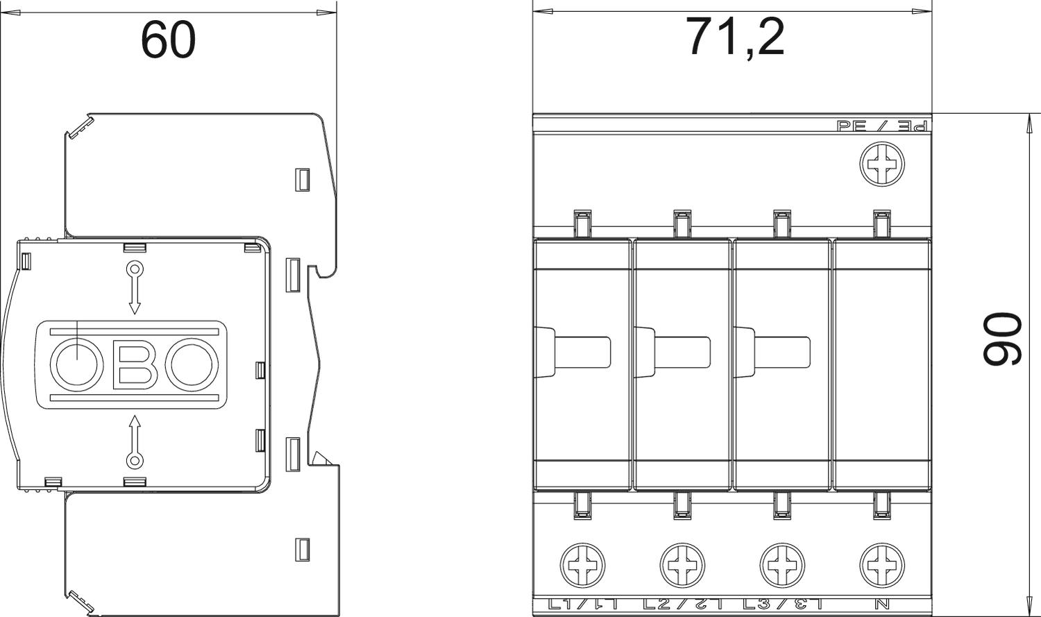 - DIN-grootte: 4 TE (Rastermaat)