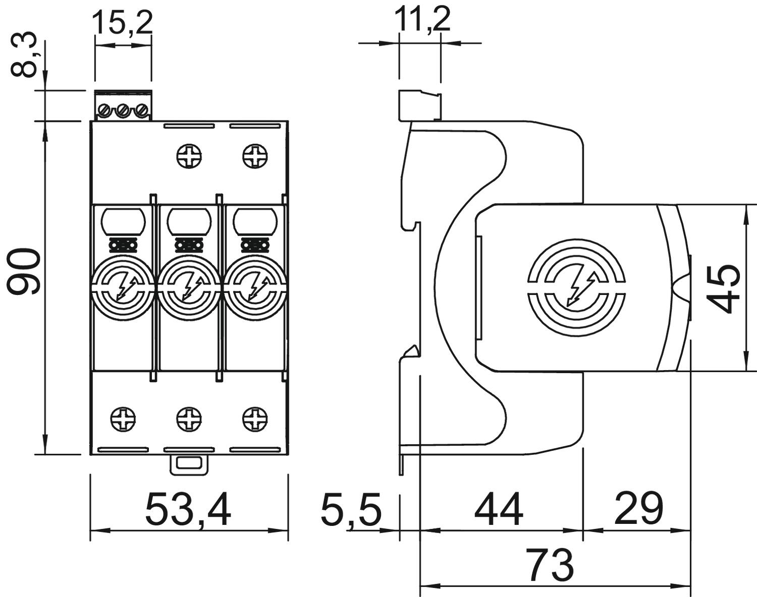 - DIN-grootte: 3 TE (Rastermaat)