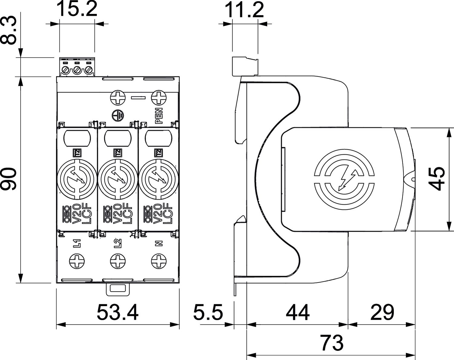 Netoverspanningsbeveiliging V20 lekstroomvrij 3P+FS 280V OBO