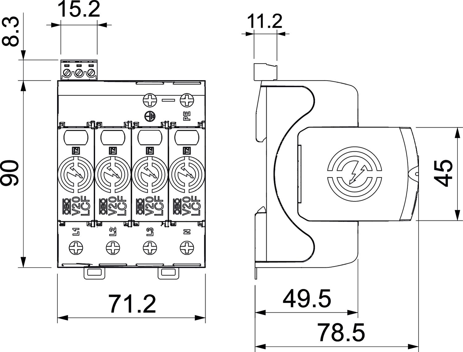 Netoverspanningsbeveiliging V20 lekstroomvrij 4P+FS 280V OBO