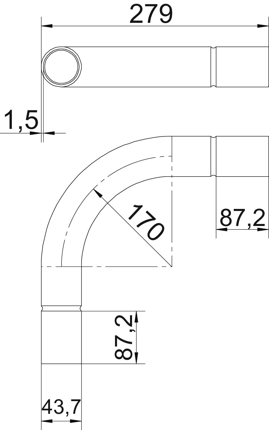 - Bochthoek: 90 °