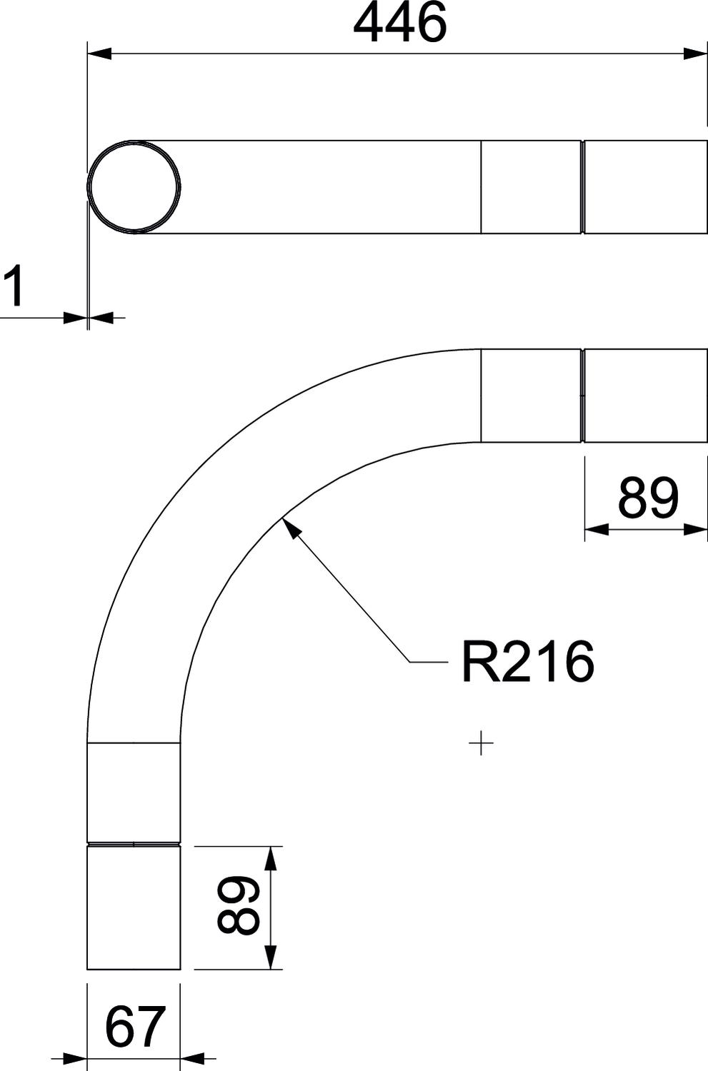- Bochthoek: 90 °