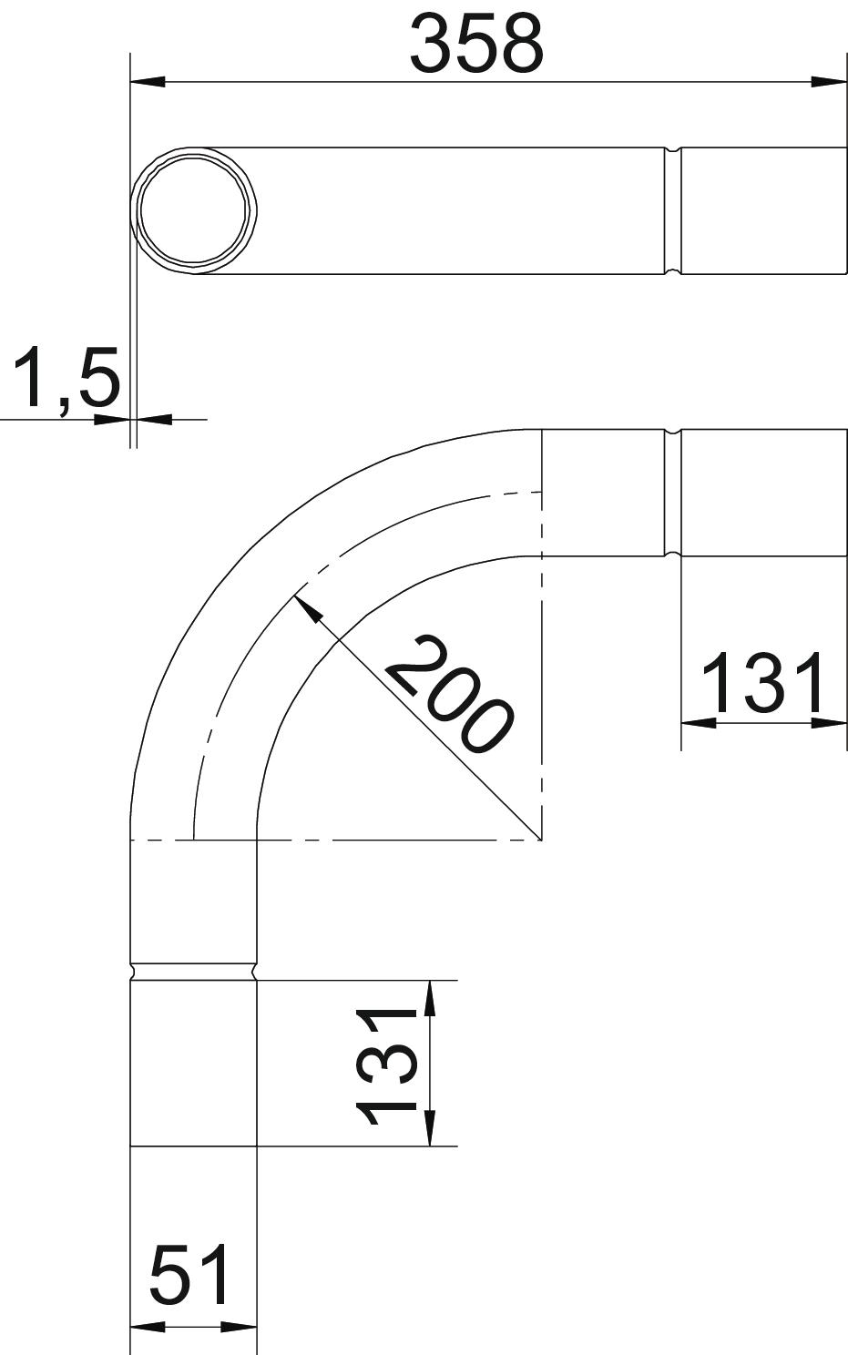 - Bochthoek: 90 °