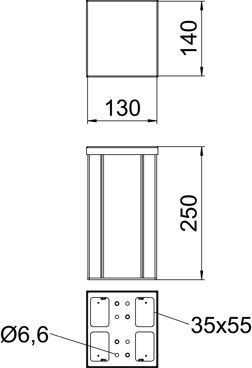 - Zuilhoogte: 250 - 250 mm