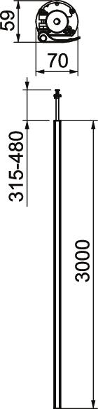 Mediazuil vloer/plafond 3000x70x59 Aluminium puur wit OBO