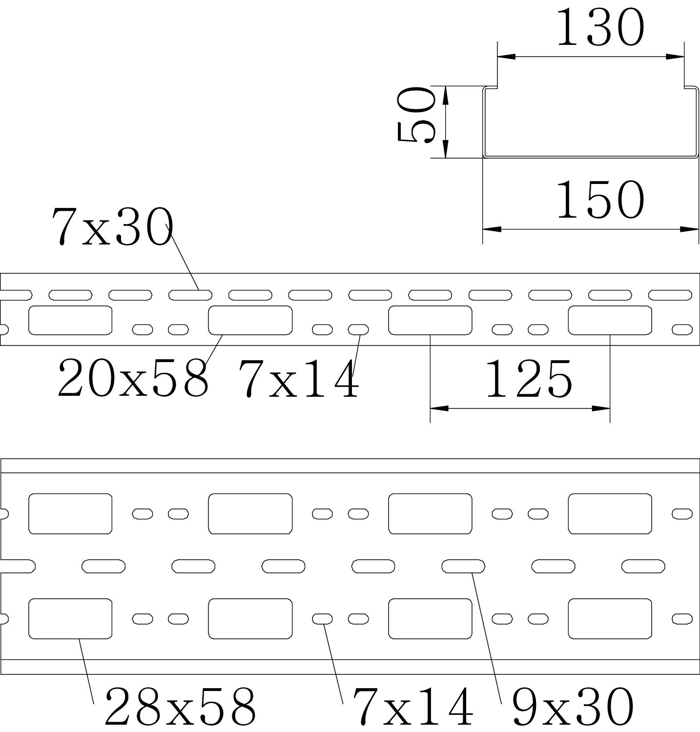 Lengte a 3m. AZ-kanaal geperforeerd 50x150 rvs A2 1.4301 OBO