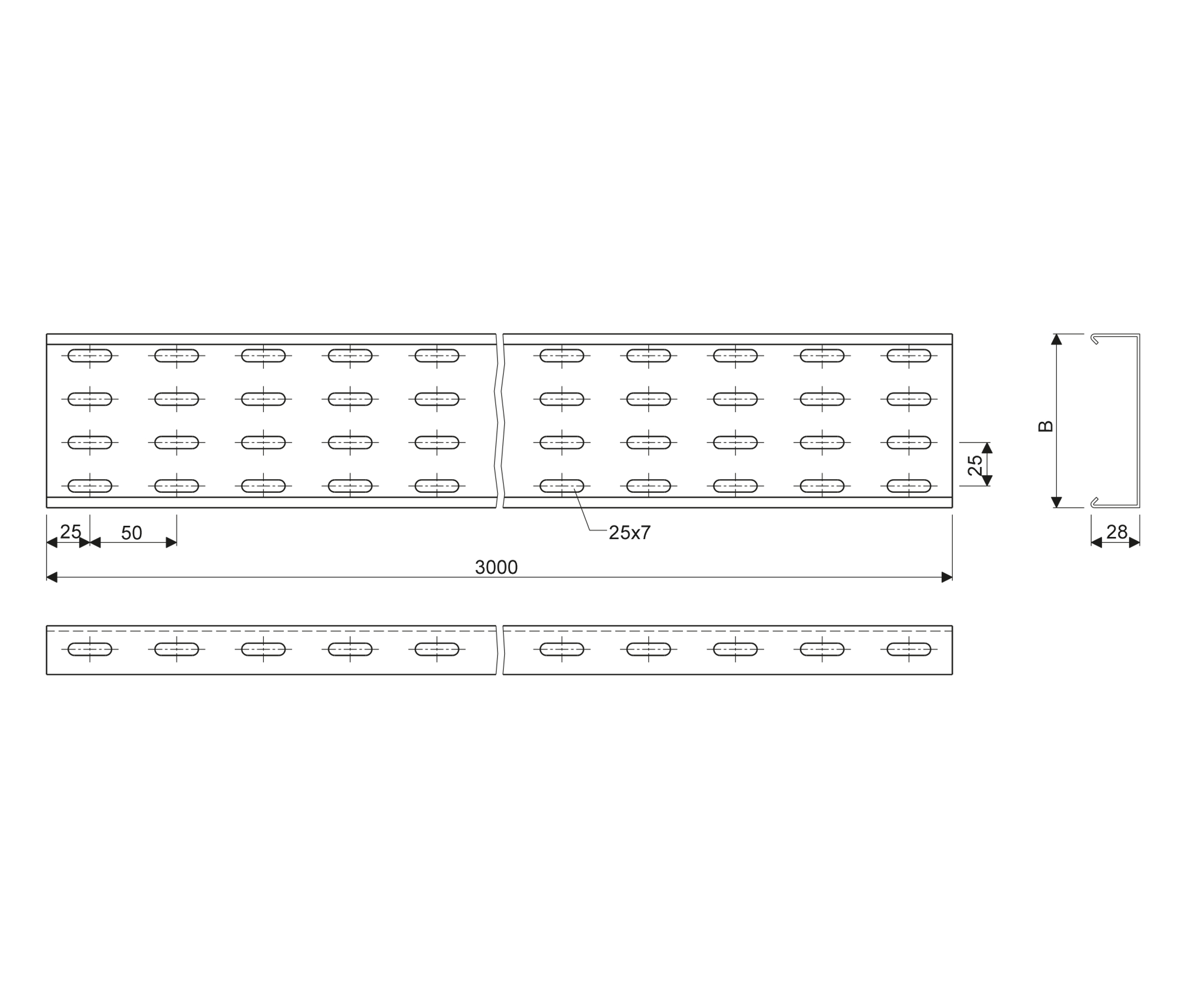 Lengte a 3m. Kabelgoot Tray GPR H28 B100 thermisch verz. Niedax Group