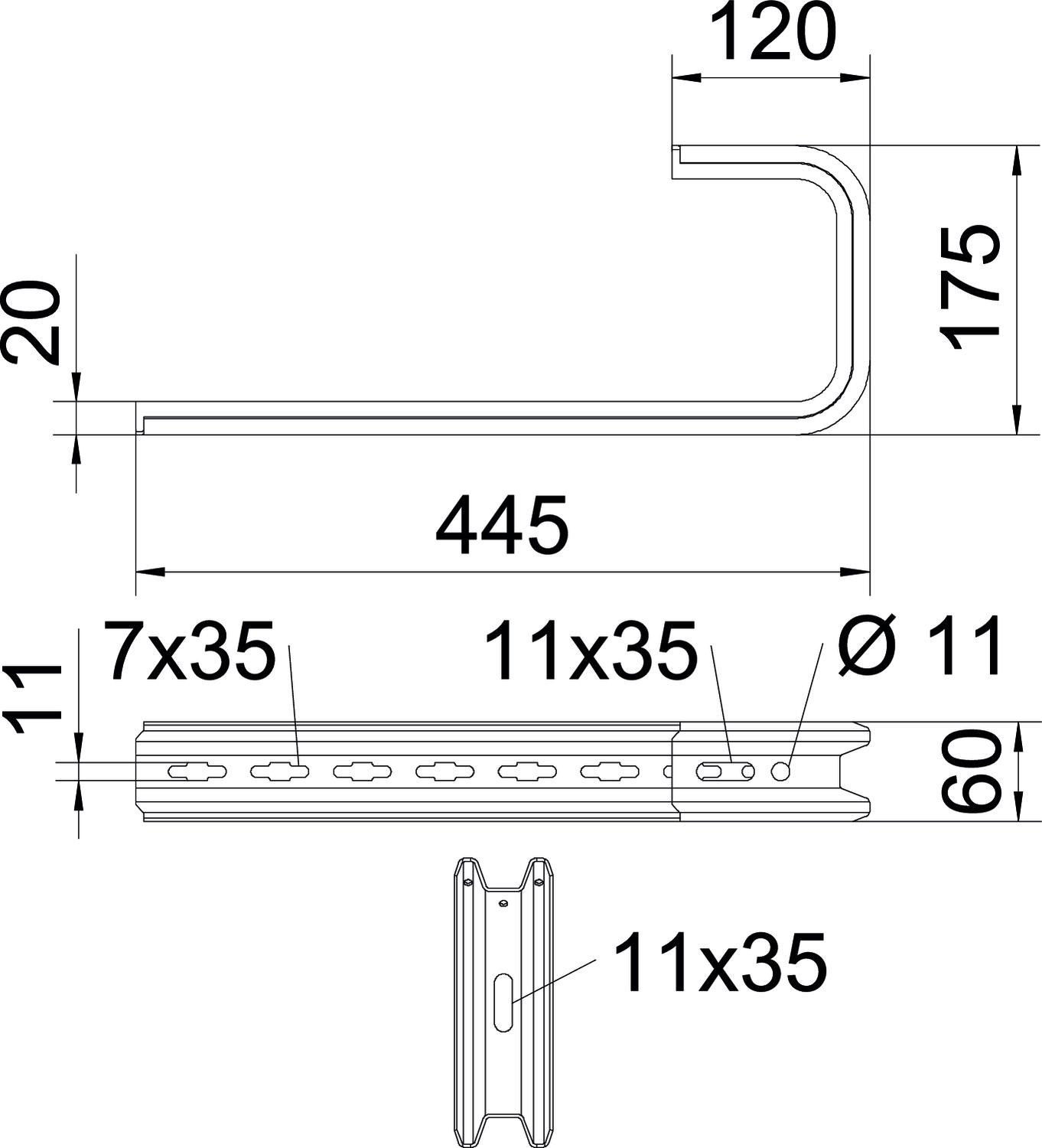Wand- en plafondbeugel TP-profiel B445mm OBO