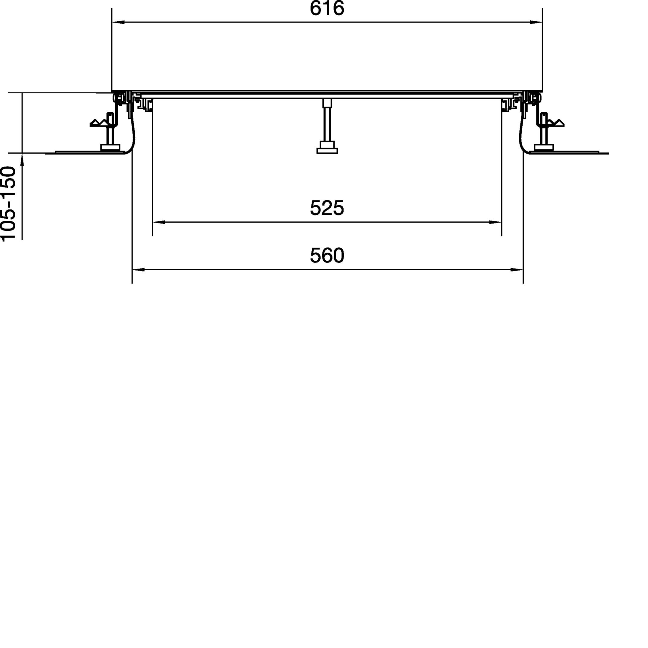 Vloergoot bovenliggend flexibele wand 600x105-150mm VVE=2 Hager