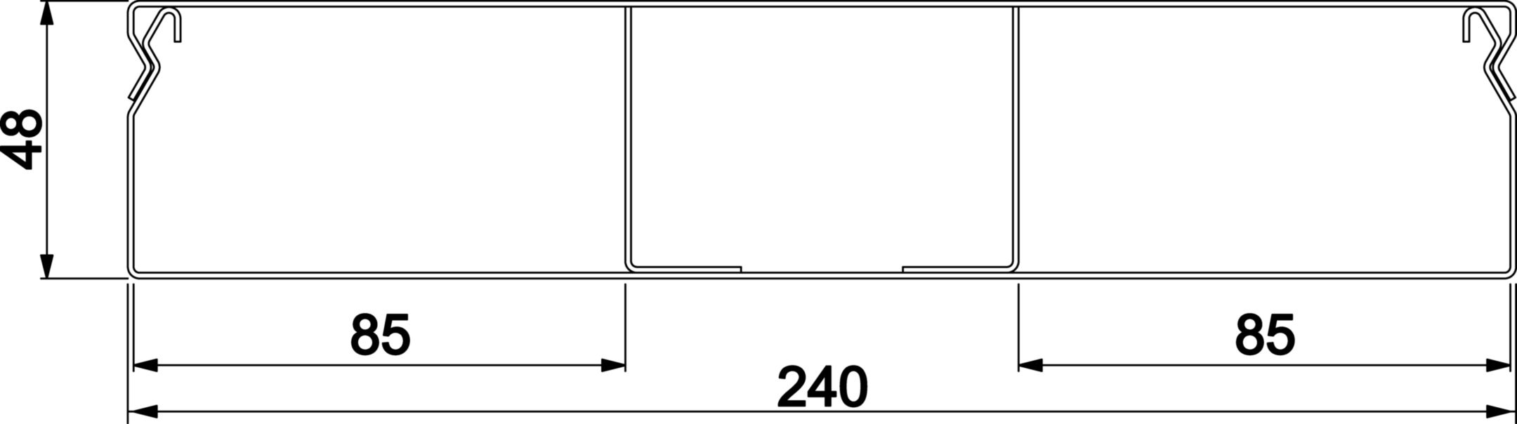 Vloergoot verzonken 3-compartimenten 240x48mm staal VVE=2 Hager