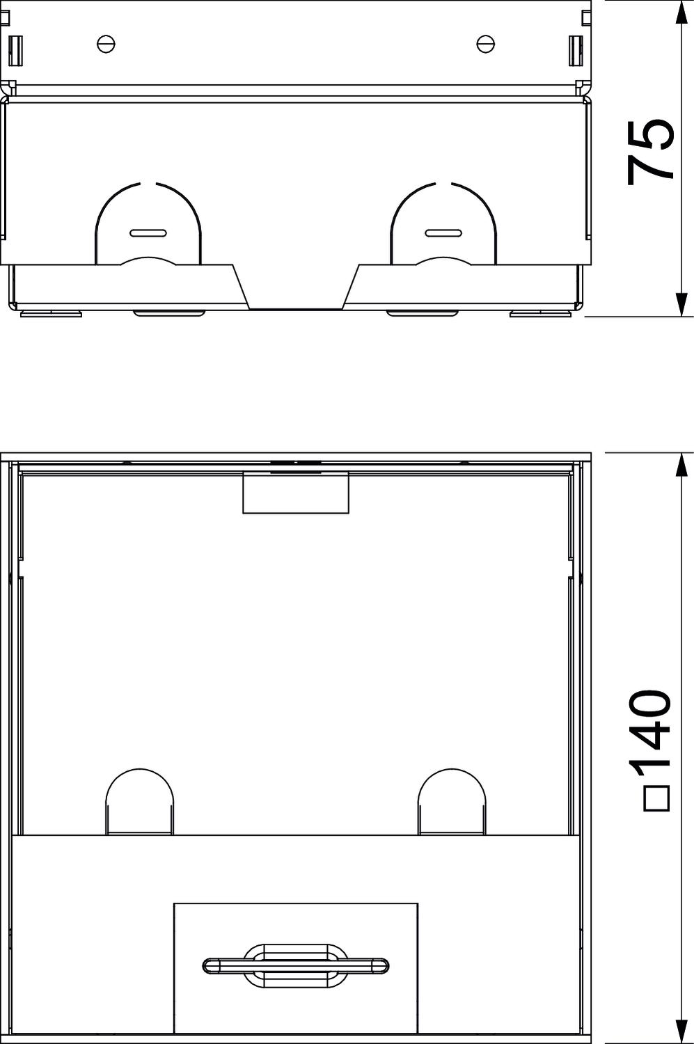 Vloerdoos leeg, met 15mm BBA 140x140x75 Messing OBO