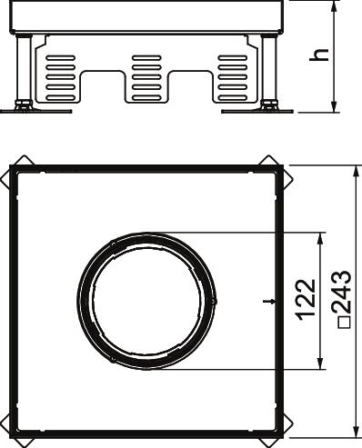 Vierkante cassette Tubus-deksel 243x243x100 rvs OBO