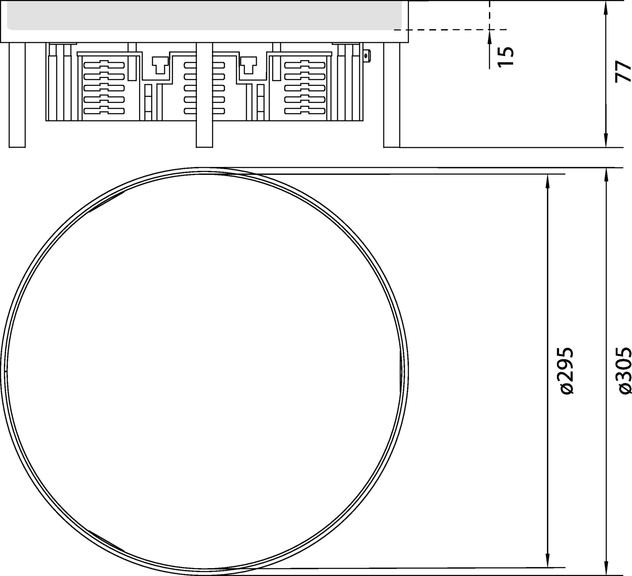 Nivelleerbare cassette Q12 rond306mm diepte 15mm blind rvs Hager