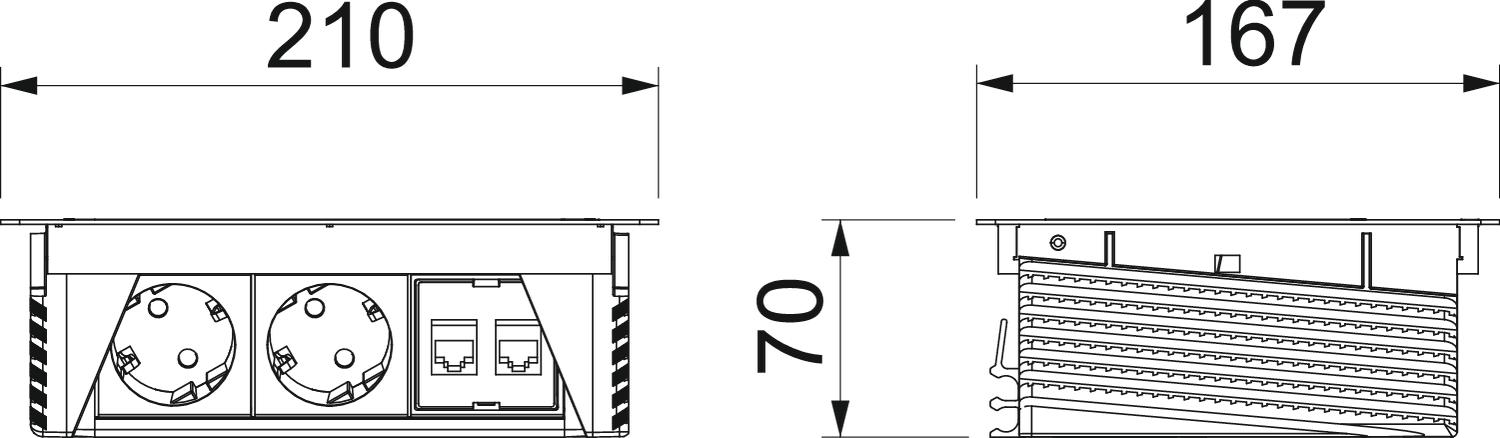 Deskbox opklapbaar voor de inbouw in tafelbladen 210x167x68 OBO