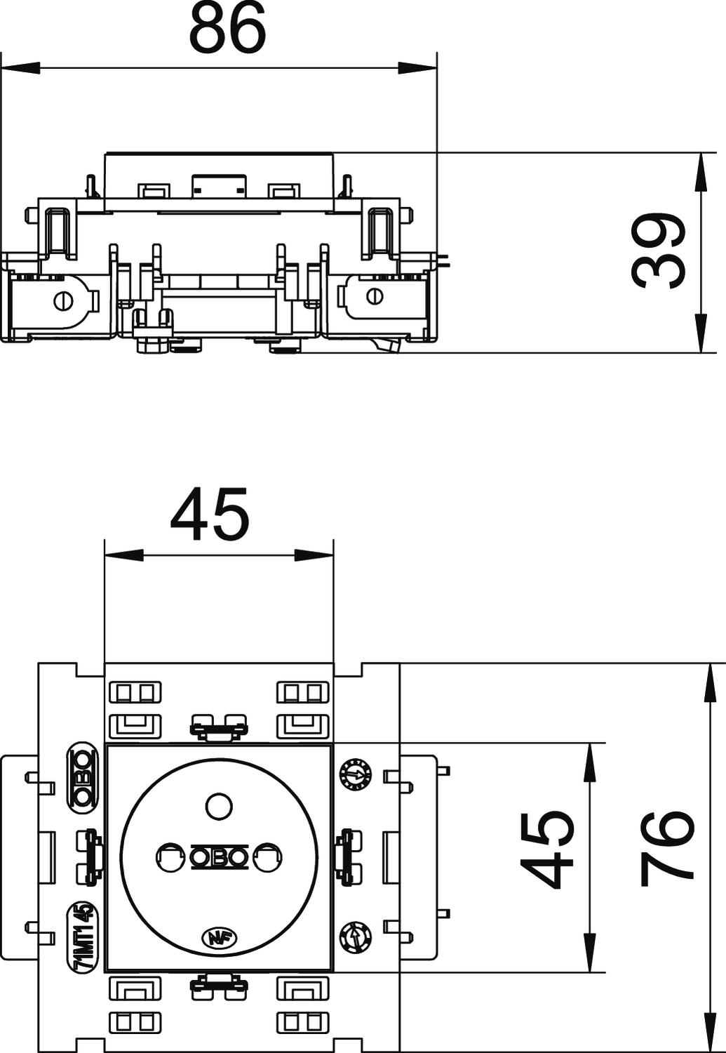 Socket 0gr. single with earth pin Connect 80 250V 10/16A Pol OBO