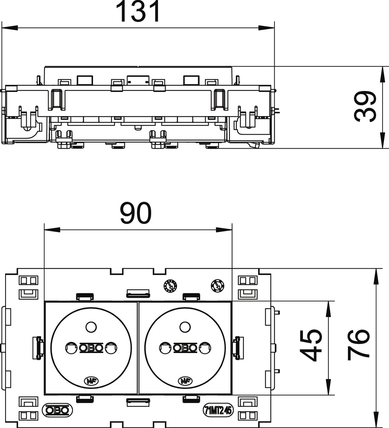 Socket 0gr. double with earth pin Connect 80 250V 10/16A Pol OBO